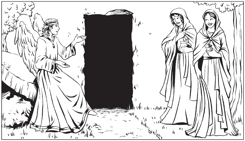 ― N’ayez pas peur. Je sais que vous cherchez Jésus, Celui qu’on a cloué sur la croix, mais Il n’est pas ici ! Car Il est revenu de la mort à la vie comme Il l’avait annoncé. Venez voir l’endroit où Il était couché… Et maintenant, allez vite dire à Ses disciples qu’Il est revenu d’entre les morts et qu’Il les attend en Galilée; c’est là qu’ils Le retrouveront. Voilà ce que j’avais à leur dire.
