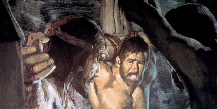 Just a naked dying man on a cross, unable to even fold his hands to pray.
